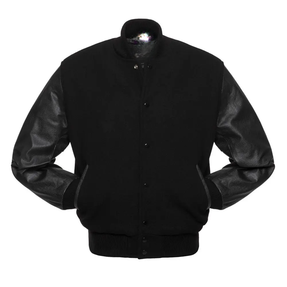 Mens Plain Black Varsity Jacket