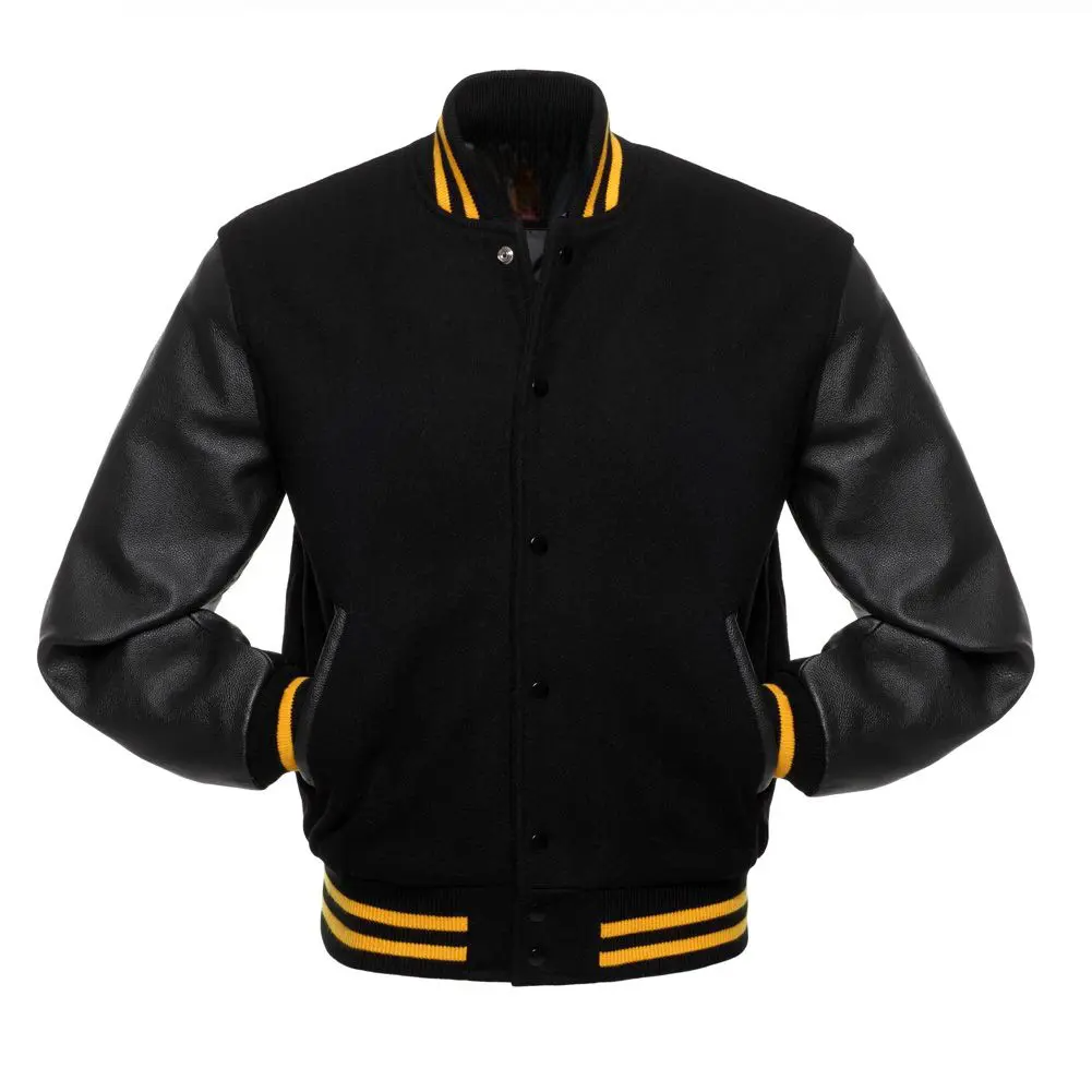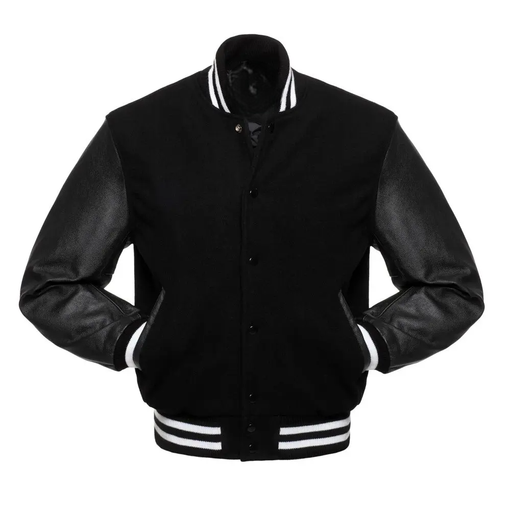 Unisex Black Wool Leather Sleeves Varsity Jacket