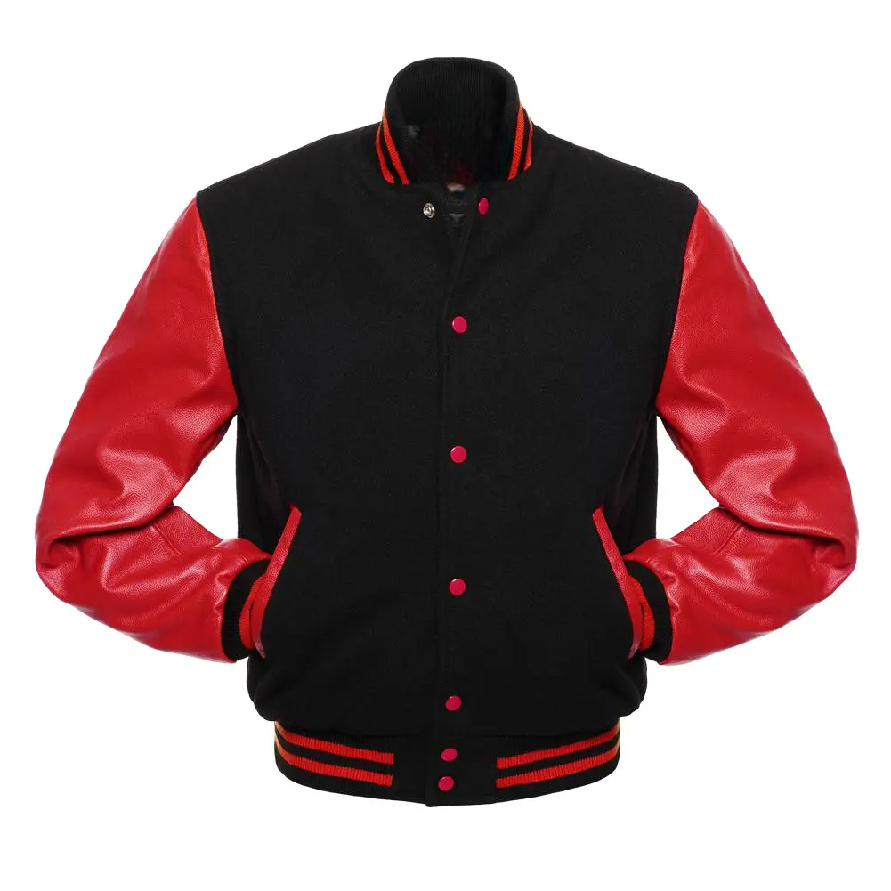 Mens Black Wool & Red Leather Varsity Jacket