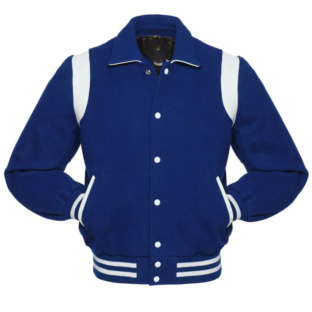 Royal Blue Wool White Leather Sleeves Varsity Jacket