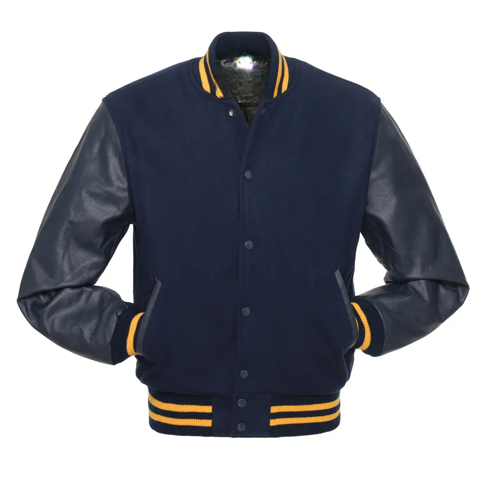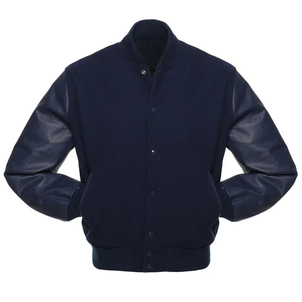 Navy Blue Wool & Navy Leather Varsity Jacket