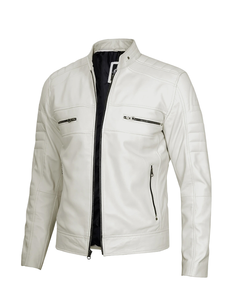Mens Waxed Natural Cowhide Cafe Leather Jacket