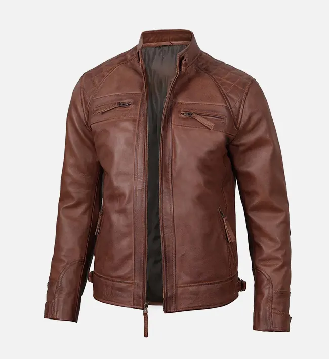 Men’s Slim Fit Brown Cafe Racer Leather Jacket