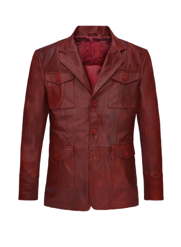 Mens Burgundy Blazer Leather Jacket