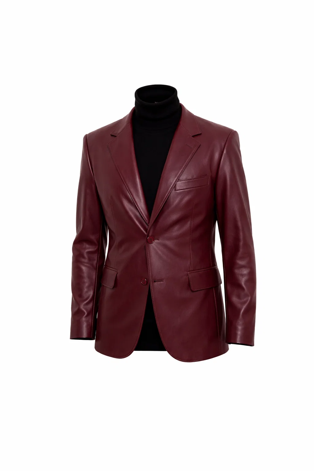 Men’s Burgundy Slim-Fit Leather Blazer