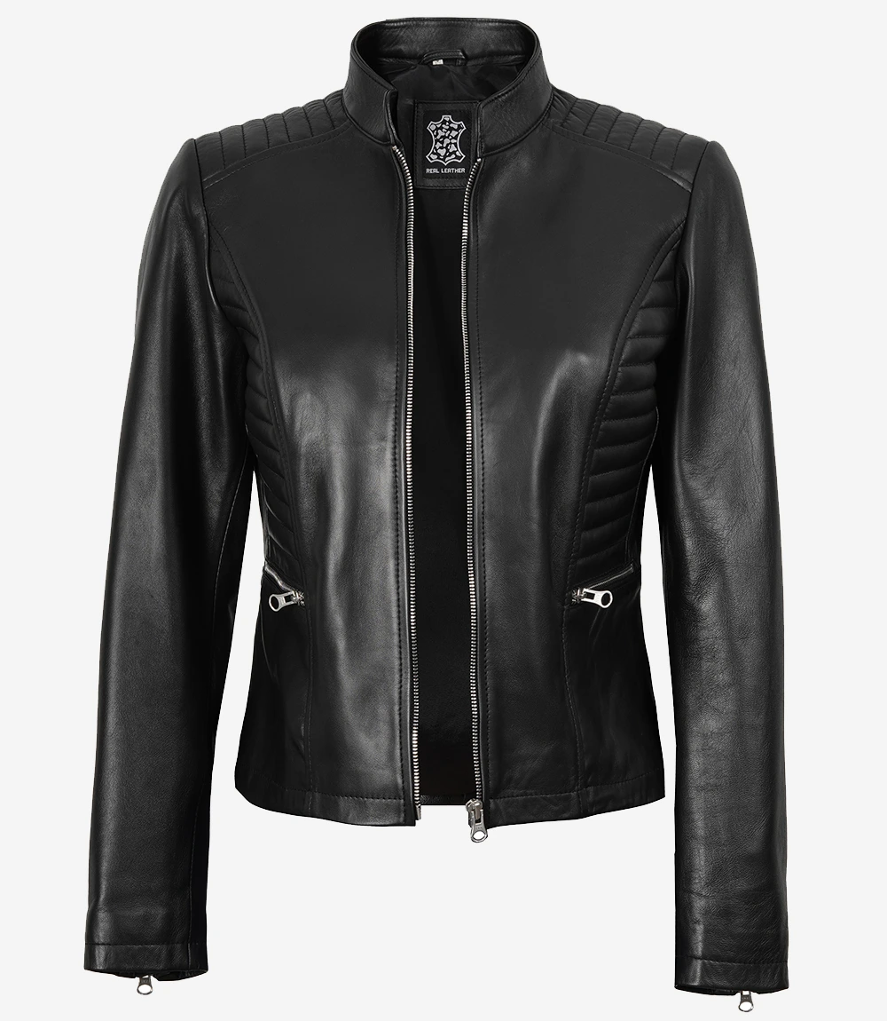Womens Real Lambskin Leather Black Biker Style Jacket