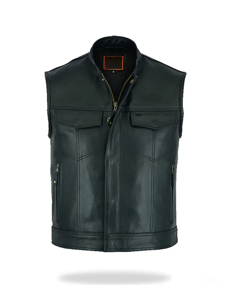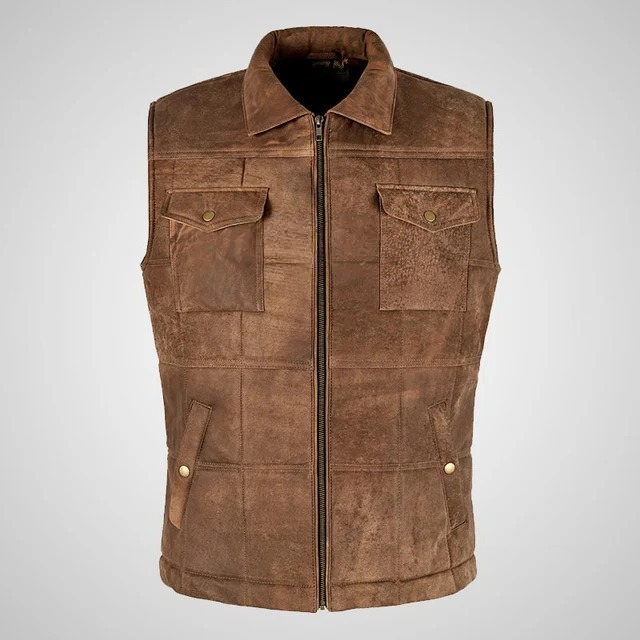 Men’s Brown Black Distressed Motorcycle Leather Vest