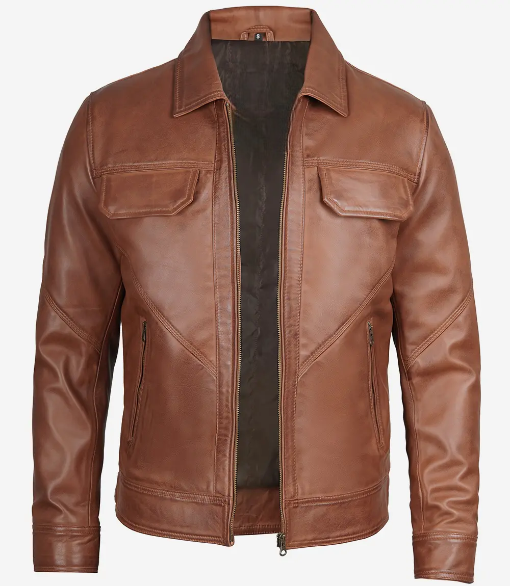 Men’s Classic Brown Trucker Leather Jacket