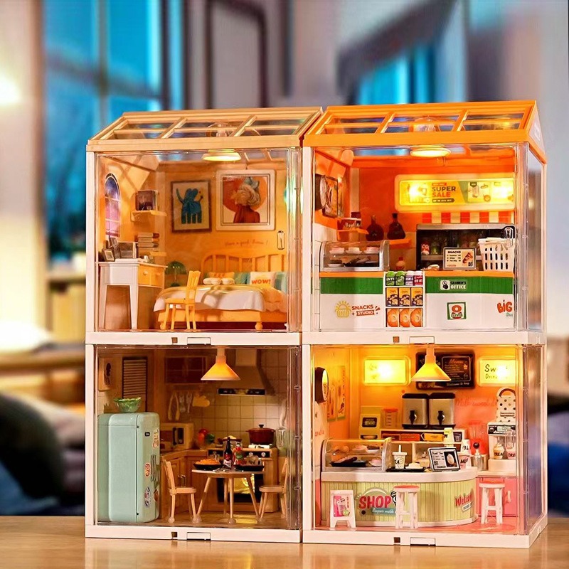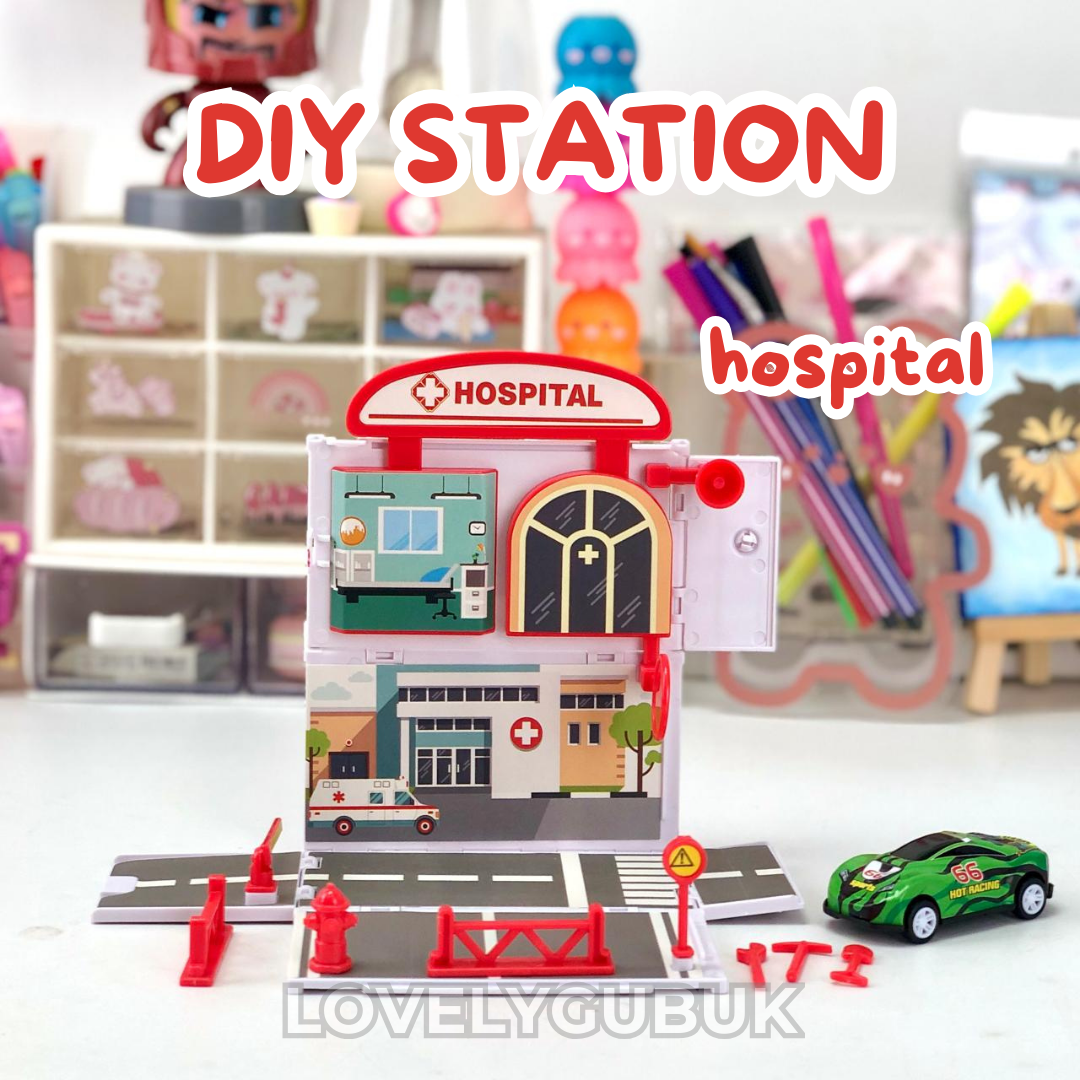 Mainan Rakitan Kota Mobi Mini, DIY Station Mini City Playset