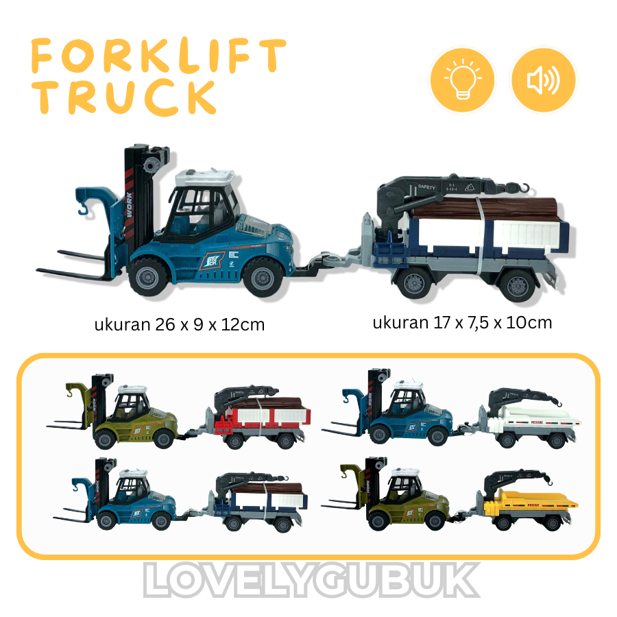 Mainan Alat Berat Forklift Trailer Truck 1:43 Inertial Drive Light & Sound