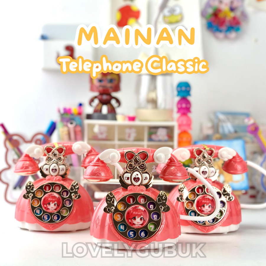 Mainan Telepon Anak Perempuan Edukasi Musik dan Lampu – Model Vintage Klasik Pink