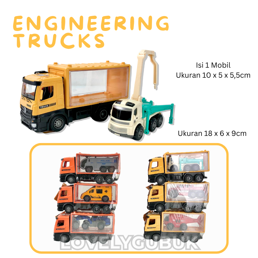 Mainan Mobil Truk Container Engineering Konstruksi Inersia Set Alloy Truck