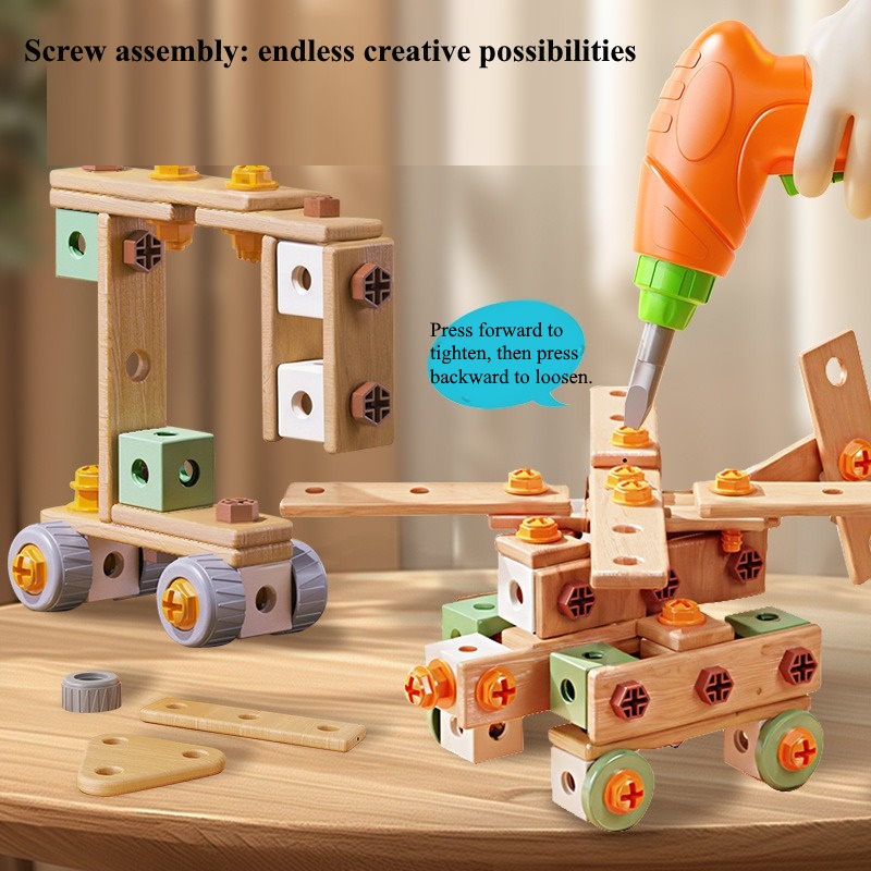 Mainan edukasi anak DIY Assembly, Mainan alat bongkar-pasang manual, mur & baut, DIY puzzle 3D, obeng & sekrup, balok rakit, untuk edukasi dini